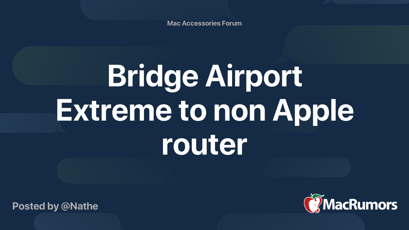 Bridge Airport Extreme To Non Apple Router Macrumors Forums