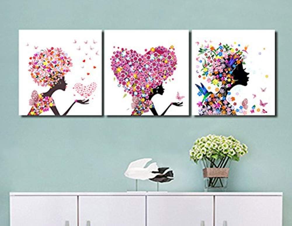 LB Papillon,Fille,Fleur,Noir,Blanc,Jaune,Bleu_Huile Peinture Impression dimage sur Toile Art Mural pour Salon Chambre à Coucher décoration de la Maison 3 pièces 40x40 avec Cadre Tableaux, posters et arts décoratifs Tableaux