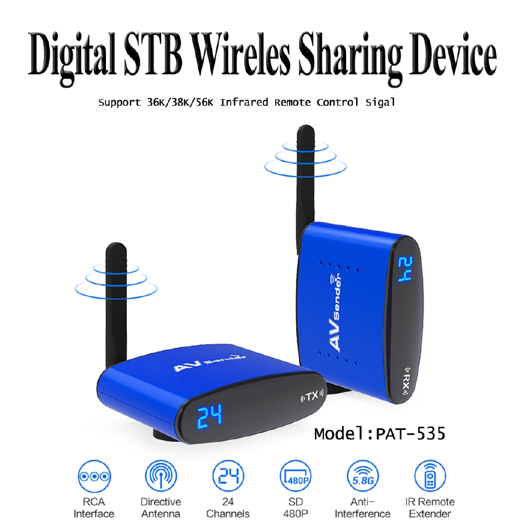 PAT-556 5.8G Wireless Sharing 300m AV Sender TV Audio Transmitter Receiver IR Signal Extension Cable - Emankom